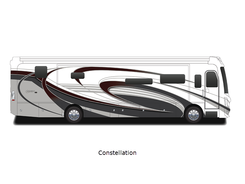 Sleeps 4 Slides 4 Length 44 ft Ext Width 8 ft 6 in Ext Height 12 ft 10 in Int Height 7 ft Interior Color Serenity, Anthology, Signature, Amaretto Exterior Color Carezza, Constellation, Hourglass, Montezuma, Plantation, Rendezvous Hitch Weight 15000 lbs GVWR 43600 lbs Fresh Water Capacity 105 gals Grey Water Capacity 75 gals Black Water Capacity 50 gals Tire Size 275/80R 22.5H Generator 8kw Onan Quiet Diesel Fuel Type Diesel Engine Cummins L9 Chassis Freightliner Custom XCM Horsepower 450 hp Fuel Capacity 100 gals Wheelbase 309 in Available Beds King Torque 1250 ft-lb Refrigerator Type Residential w/Ice and Water In Door Convection Cooking Yes Cooktop Burners 2 Shower Size 34" x 48" Number of Awnings 1 Axle Weight Front 13600 lbs Axle Weight Rear 20000 lbs Axle Weight Tag 10000 lbs Water Heater Type Aqua Hot 400D AC BTU 45000 btu Basement Storage 152 cu. ft. TV Info LR LED TV, Cab LED TV, BR LED TV, Ext. LED TV Awning Info 18' Power w/LED Lighting & Motion Sensor Retract Washer/Dryer Available Yes Gross Combined Weight 58600 lbs Shower Type Shower w/Seat Electrical Service 50 amp Similar Floorplans