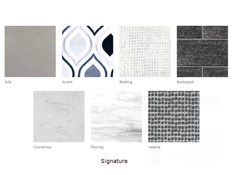 Sleeps 5 Slides 3 Length 40 ft 1 in Ext Width 8 ft 6 in Ext Height 12 ft 10 in Int Height 7 ft Interior Color Serenity, Anthology, Signature, Amaretto Exterior Color Carezza, Constellation, Hourglass, Montezuma, Plantation, Rendezvous Hitch Weight 10000 lbs GVWR 36600 lbs Fresh Water Capacity 105 gals Grey Water Capacity 75 gals Black Water Capacity 50 gals Tire Size 275/80R 22.5H Generator 8kw Onan Quiet Diesel Fuel Type Diesel Engine Cummins L9 Chassis Freightliner Custom XCM Horsepower 380 hp Fuel Capacity 100 gals Wheelbase 263 in Available Beds King Torque 1150 ft-lb Refrigerator Type Residential w/Ice and Water In Door Convection Cooking Yes Cooktop Burners 2 Shower Size 50" x 28" Number of Awnings 1 Axle Weight Front 12600 lbs Axle Weight Rear 24000 lbs Water Heater Type Aqua Hot 400D AC BTU 45000 btu Basement Storage 142 cu. ft. TV Info LR Pop-Up LED TV, Cab TV, BR LED TV, Ext. LED TV Awning Info 18' Power w/LED Lighting & Motion Sensor Retract Washer/Dryer Available Yes Gross Combined Weight 46600 lbs Shower Type Shower w/Seat Electrical Service 50 amp Similar Floorplans