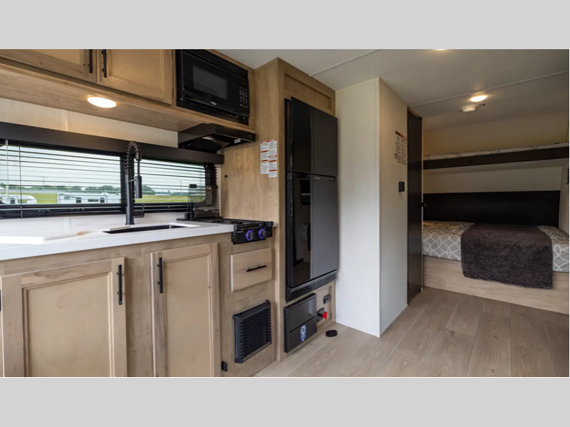 You'll enjoy all the features included on the standard Cherokee Wolf Pup plus added features on the Black Label. Each model features durable construction material so you can enjoy your RV for years to come. There are full bath and kitchen amenities, comfortable places to relax and sleep, plus ample storage space for your belongings.