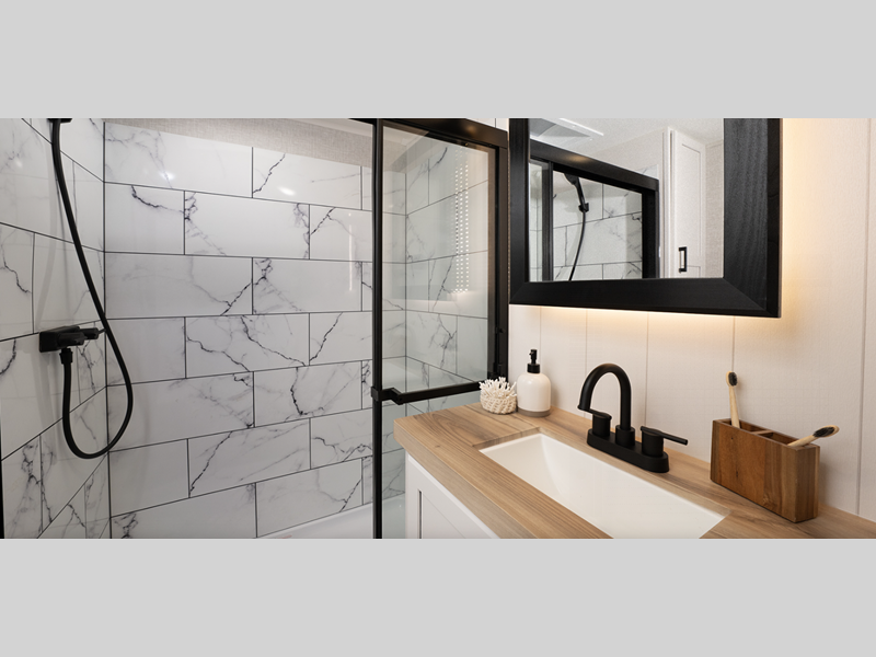 Sleeps 4 Slides 3 Length 40 ft 10 in Ext Width 8 ft 1 in Ext Height 13 ft 4 in Int Height 8 ft 7 in Interior Color Classic Farmhouse Hitch Weight 2375 lbs GVWR 14300 lbs Dry Weight 12020 lbs Cargo Capacity 2280 lbs Fresh Water Capacity 81 gals Grey Water Capacity 87 gals Black Water Capacity 87 gals Tire Size ST235/85R16E Furnace BTU 35000 btu Available Beds King Refrigerator Type 12 Volt Refrigerator Size 16 cu ft Cooktop Burners 3 Shower Size 30" x 60" Number of Awnings 2 LP Tank Capacity 30 lbs Water Heater Type Tankless AC BTU 30000 btu TV Info LR 50" 4K Ultra HD Smart TV Awning Info 21' and 10' 6" Electric with integrated dimmable LED lights Axle Count 2 Washer/Dryer Available Yes Number of LP Tanks 2 Shower Type Standard Electrical Service 50 amp Similar Floorplans