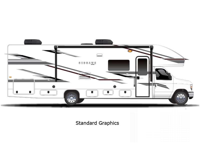 Sleeps 6 Slides 1 Length 32 ft 6 in Ext Width 8 ft 4 in Ext Height 11 ft 6 in Int Height 7 ft Interior Color Ashbrook, Modern Farmhouse Hitch Weight 7500 lbs GVWR 14500 lbs Fresh Water Capacity 43 gals Grey Water Capacity 41 gals Black Water Capacity 32 gals Tire Size LT225/75R16E Furnace BTU 30000 btu Generator 4,000W Fuel Type Gas Engine 7.3L V8 Chassis Ford E-450 Horsepower 325 hp Fuel Capacity 55 gals Wheelbase 223 in Number Of Bunks 1 Available Beds RV Queen Torque 450 ft-lb Refrigerator Type 12V Refrigerator Size 10 cu ft Cooktop Burners 3 Shower Size 24" x 36" Number of Awnings 1 LP Tank Capacity 41 lbs Water Heater Capacity 6 gal Water Heater Type Gas/Electric DSI AC BTU 15000 btu Basement Storage 88 cu. ft. TV Info LR LED HD Smart TV Awning Info 16' Electric with LED Lights Gross Combined Weight 22000 lbs Shower Type Standard Electrical Service 30 amp Similar Floorplans