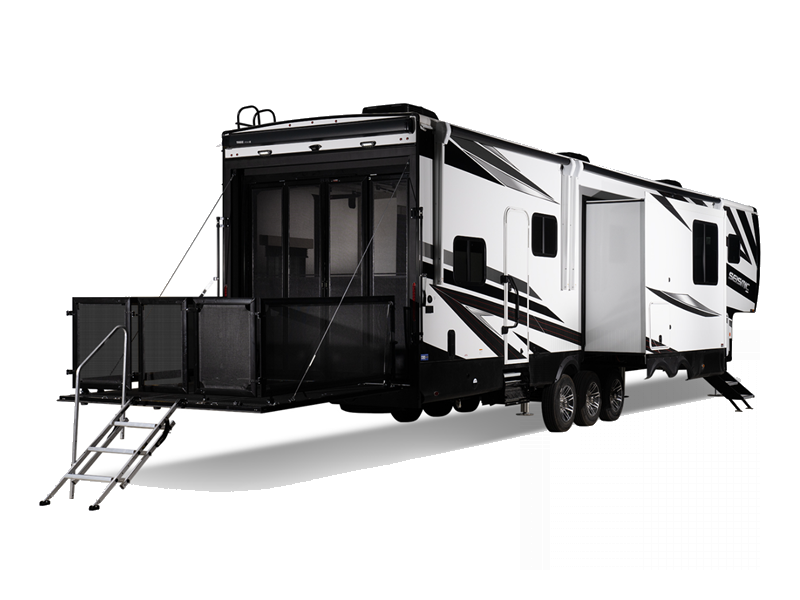 Jayco Seismic fifth wheel toy hauler 395 highlights: Rear Ramp w/Party Deck ... more about Seismic 395